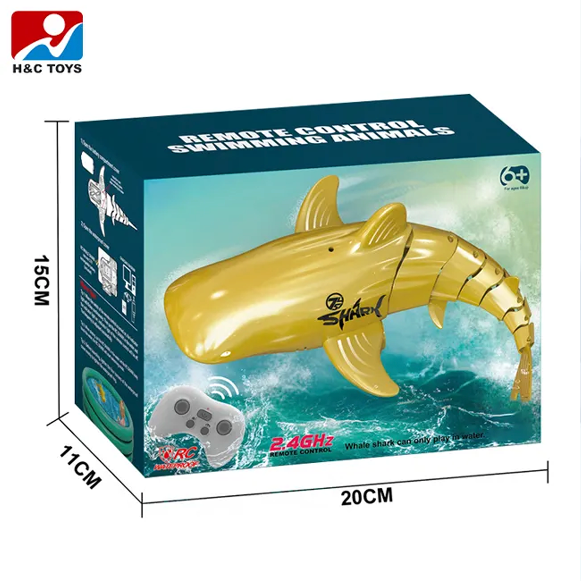 - جهاز تحكم عن بعد مقاوم للماء: لا داعي للقلق بشأن إتلاف أطفالك لجهاز التحكم عن بعد بوضعه في الماء، فهذه المرة سيحصلون على جهاز تحكم عن بعد مقاوم للماء! يرجى ملاحظة: عند إغلاق الغطاء المقاوم للماء عند مصدر الطاقة للعبة القرش الحوت، تحتاج إلى شد المسمار في اتجاه عقارب الساعة، مما قد يمنع حجرة البطارية من الحصول على الماء بسبب التشغيل غير السليم قدر الإمكان.
