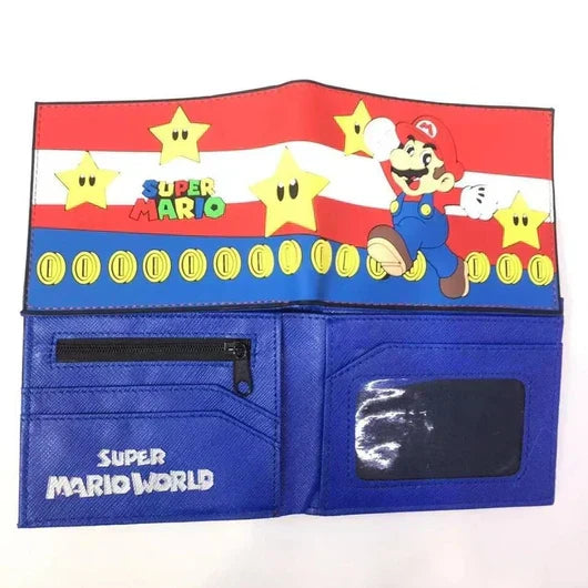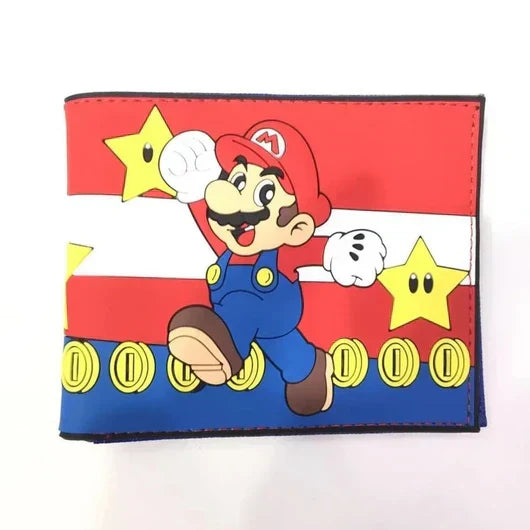 محفظة جلدية عليها شعار ماريو للنقود وبطاقات الائتمان