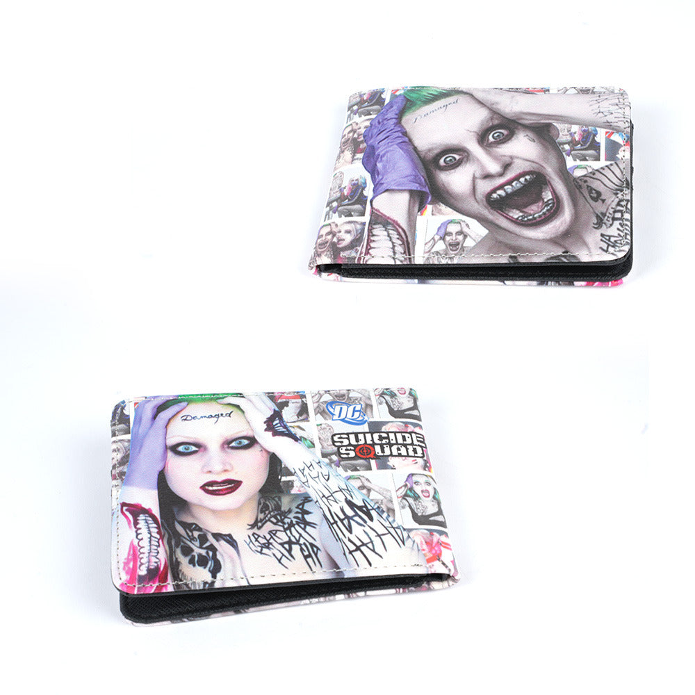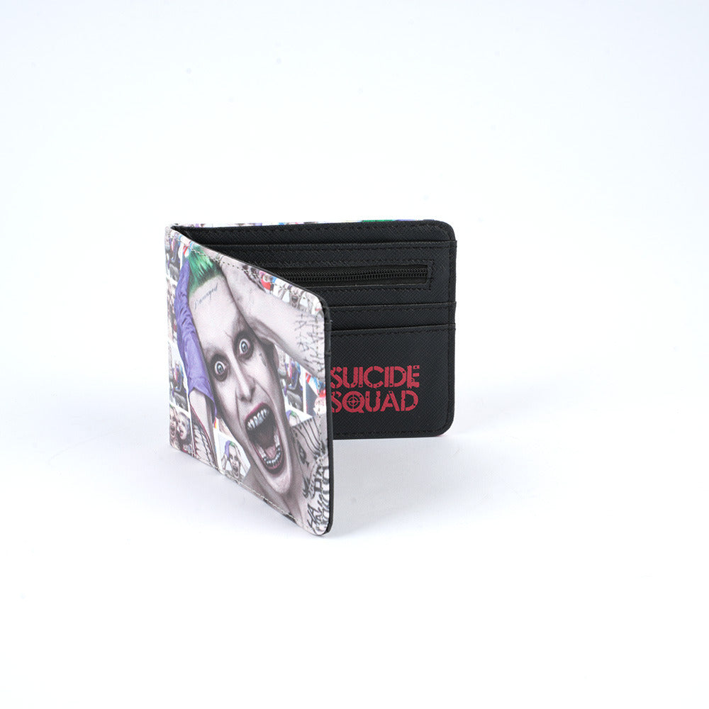 أضف لمسة جريئة ومميزة إلى إطلالتك مع هذه المحفظة المستوحاة من شخصية الجوكر الشهيرة من فيلم Suicide Squad. تتميز بتصميم خارجي فني عالي الجودة يُظهر تفاصيل وجه الجوكر وتعبيراته الجنونية مع رسومات الغرافيتي المميزة. مصنوعة من مواد متينة وخفيفة الوزن، وتجمع بين الأسلوب العصري والوظيفة العملية لحمل النقود والبطاقات بسهولة. خيار مثالي لعشاق شخصيات DC وعالم الكوميكس.